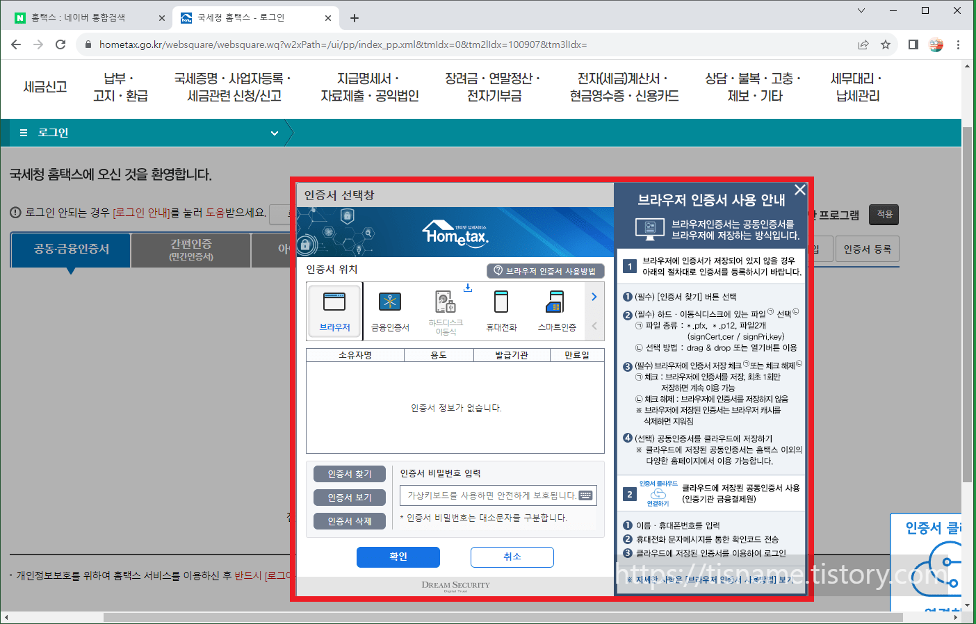 홈택스 브라우저 인증서 등록 방법 (공동인증서 저장위치 찾기)
